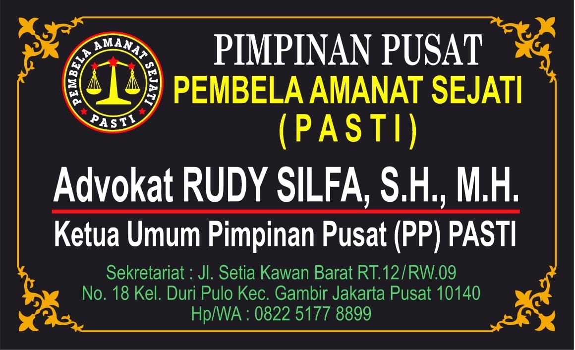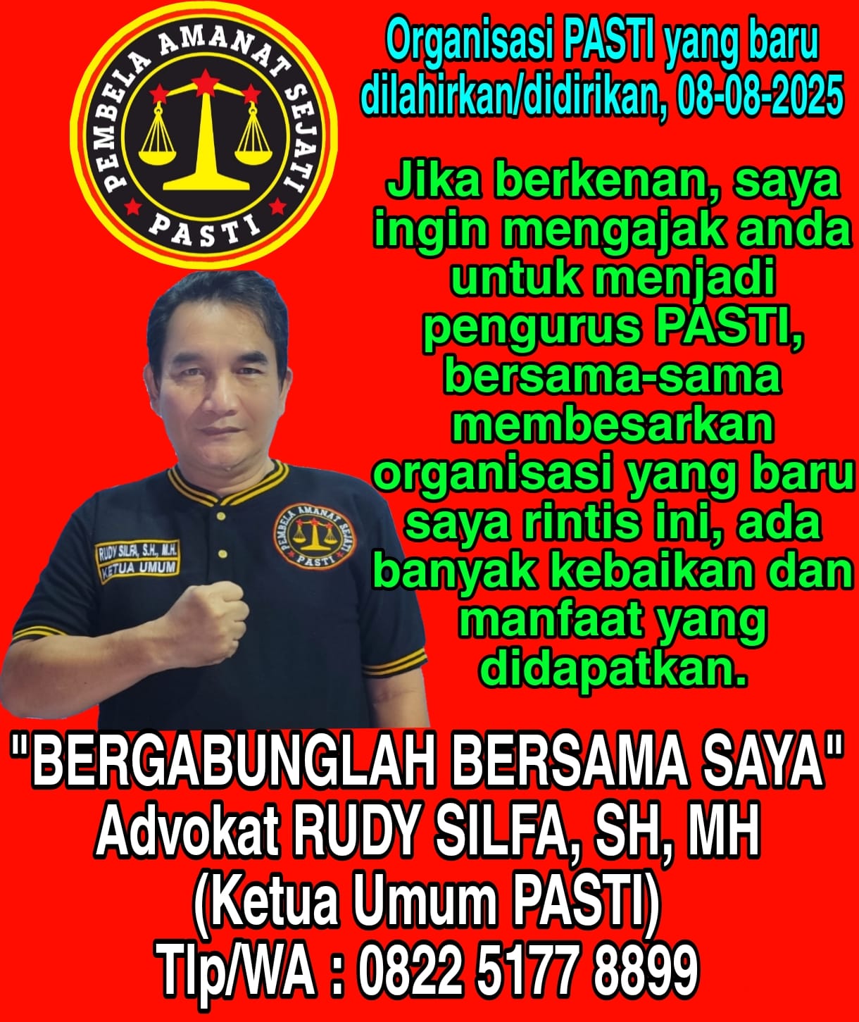 Bergabunglah bersama saya, Advokat Rudy Silfa, S.H., M.H., Ketua Umum PASTI.