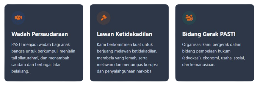 Berdiri sejak 08-08-2025, Pembela Amanat Sejati (PASTI) hadir sebagai wadah bagi para pejuang keadilan. Mari bergabung, berjuang, dan tebarkan manfaat bagi bangsa.